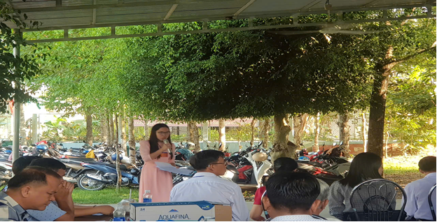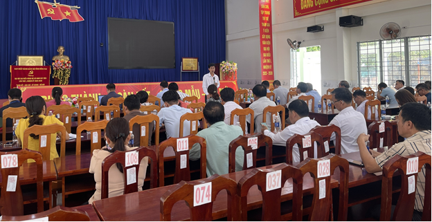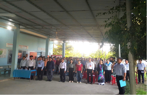 Sau hội nghị diễn tập, Ủy ban bầu cử tiến hành rút kinh nghiệm tại hội trường ủy ban nhân dân xã