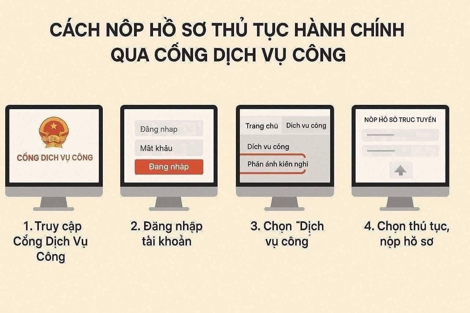 🌐 Cách 2: Nộp qua Cổng Dịch vụ công (Trang web/Dịch vụ công cấp Bộ/Tỉnh)