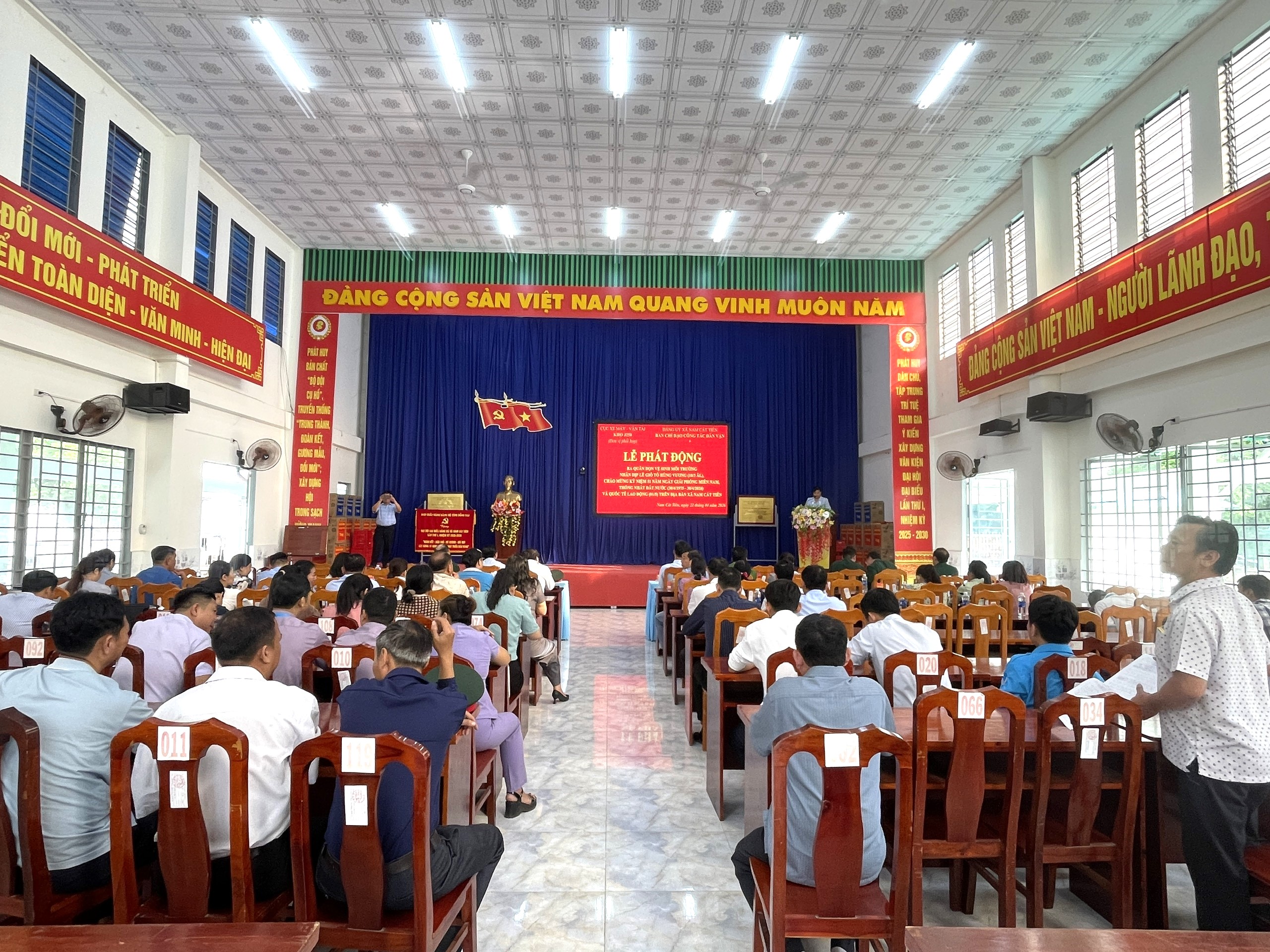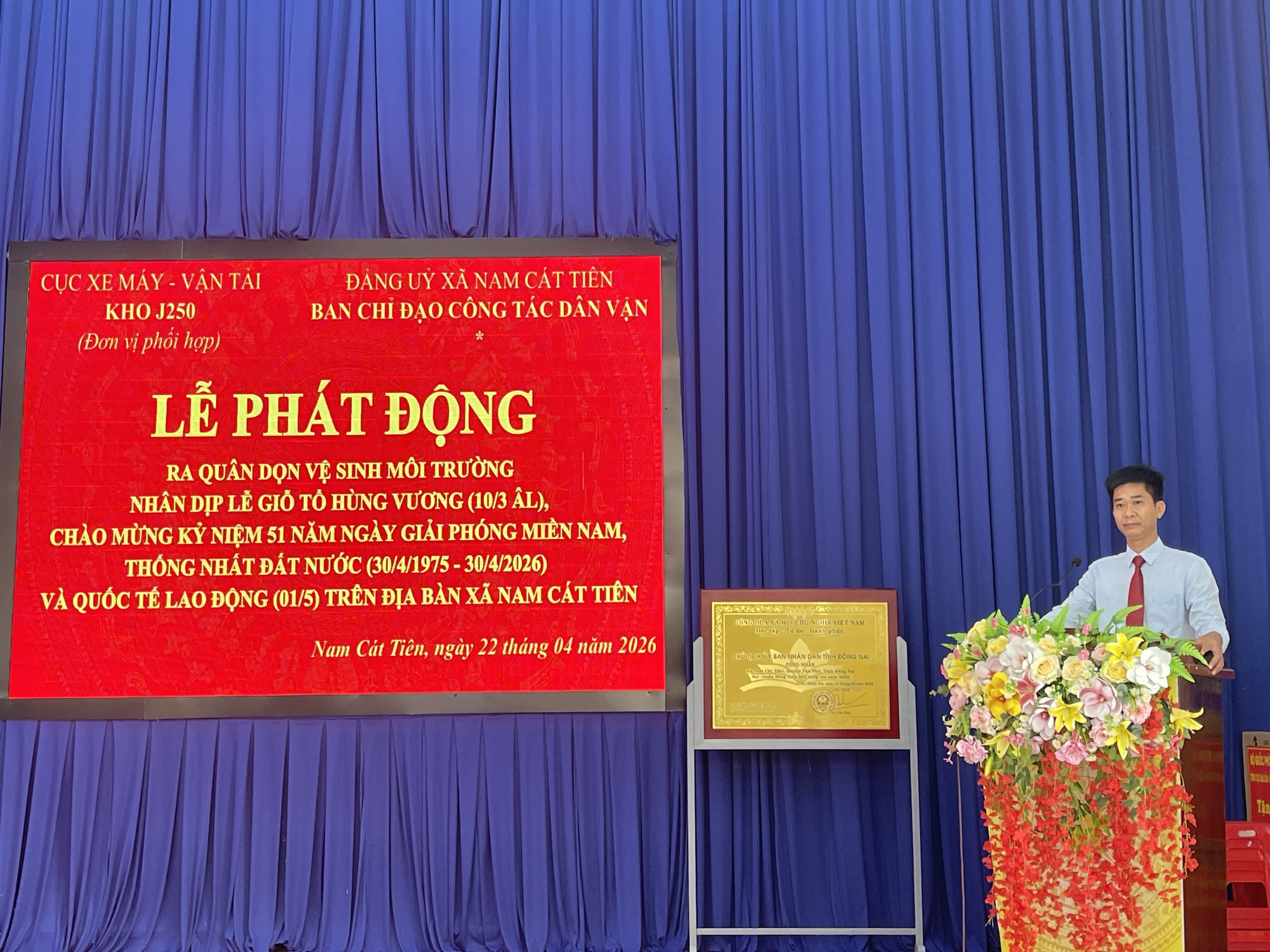 Sáng ngày 22/4/2026, Đảng ủy xã Nam Cát Tiên đã long trọng tổ chức Lễ phát động ra quân công tác dân vận gắn với hoạt động tổng dọn vệ sinh môi trường trên địa bàn toàn xã. Chương trình thu hút sự tham gia đông đảo của cán bộ, đảng viên, lực lượng vũ trang và Nhân dân, tạo nên không khí thi đua sôi nổi, thể hiện tinh thần đoàn kết, trách nhiệm vì cộng đồng.