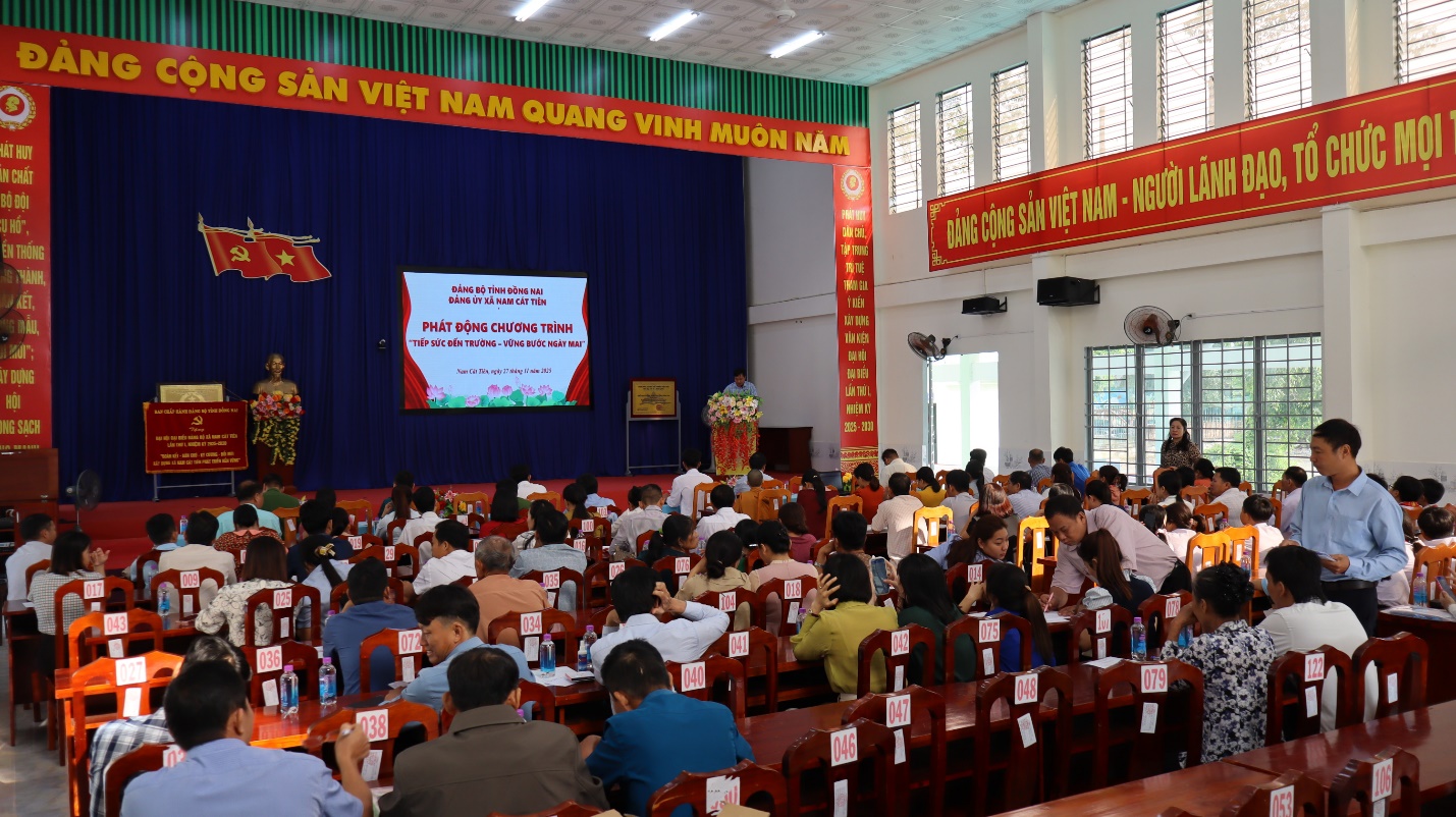 Thực hiện Kế hoạch số 13-KH/ĐU ngày 20 tháng 10 năm 2025 của Ban Thường vụ Đảng ủy xã, ngày 27 tháng 11 năm 2025, Ban Thường vụ Đảng ủy xã, Ủy ban nhân dân xã đã tổ chức Buổi phát động triển khai thực hiện chương trình “Tiếp sức đến trường - Vững bước ngày mai” với sự tham gia của lãnh đạo Thường trực Đảng ủy, Ủy ban nhân dân xã; các ban, ngành, đoàn thể, cán bộ công nhân viên thuộc xã; Ban Giám hiệu, học sinh các trường học, các doanh nghiệp, mạnh thường quân và Nhân dân địa phương nhằm hướng đến mục tiêu chăm lo cho học sinh có hoàn cảnh khó khăn, giúp các em yên tâm tiếp tục đến trường.