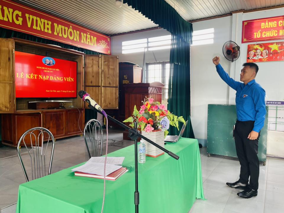 Sáng ngày 27/02/2026, Chi bộ ấp 1, Nam Cát Tiên đã long trọng tổ chức Lễ kết nạp Đảng viên cho quần chúng ưu tú Hà Vũ Ngọc Nguyễn, đánh dấu bước trưởng thành về chính trị của quần chúng trẻ, đồng thời bổ sung lực lượng mới cho tổ chức Đảng ở cơ sở.