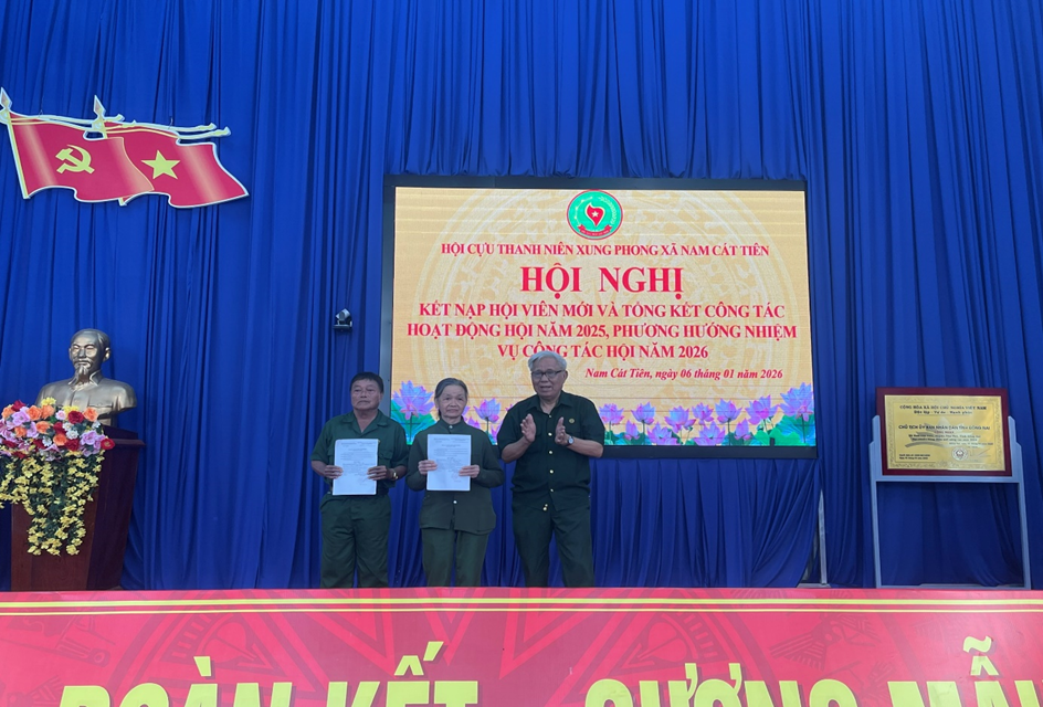 Sáng 06/01/2026, tại hội trường UBND xã, Hội cựu thanh niên xung phong (TNXP) xã Nam Cát Tiên tổ chức hội nghị kết nạp hội viên mới và tổng kết nhiệm vụ năm 2025 - phương hướng nhiệm vụ công tác hội năm 2026.